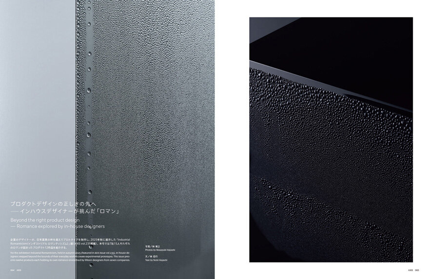 企業のデザイナーが、日常業務の枠を超えてプロトタイプを制作し、2025年秋に展示した「Industrial Romanticism(インダストリアル ロマンティシズム)」展(AXIS vol.235掲載)。本号では7社15人それぞれのロマンが詰まったプロダクト12作品を紹介する。